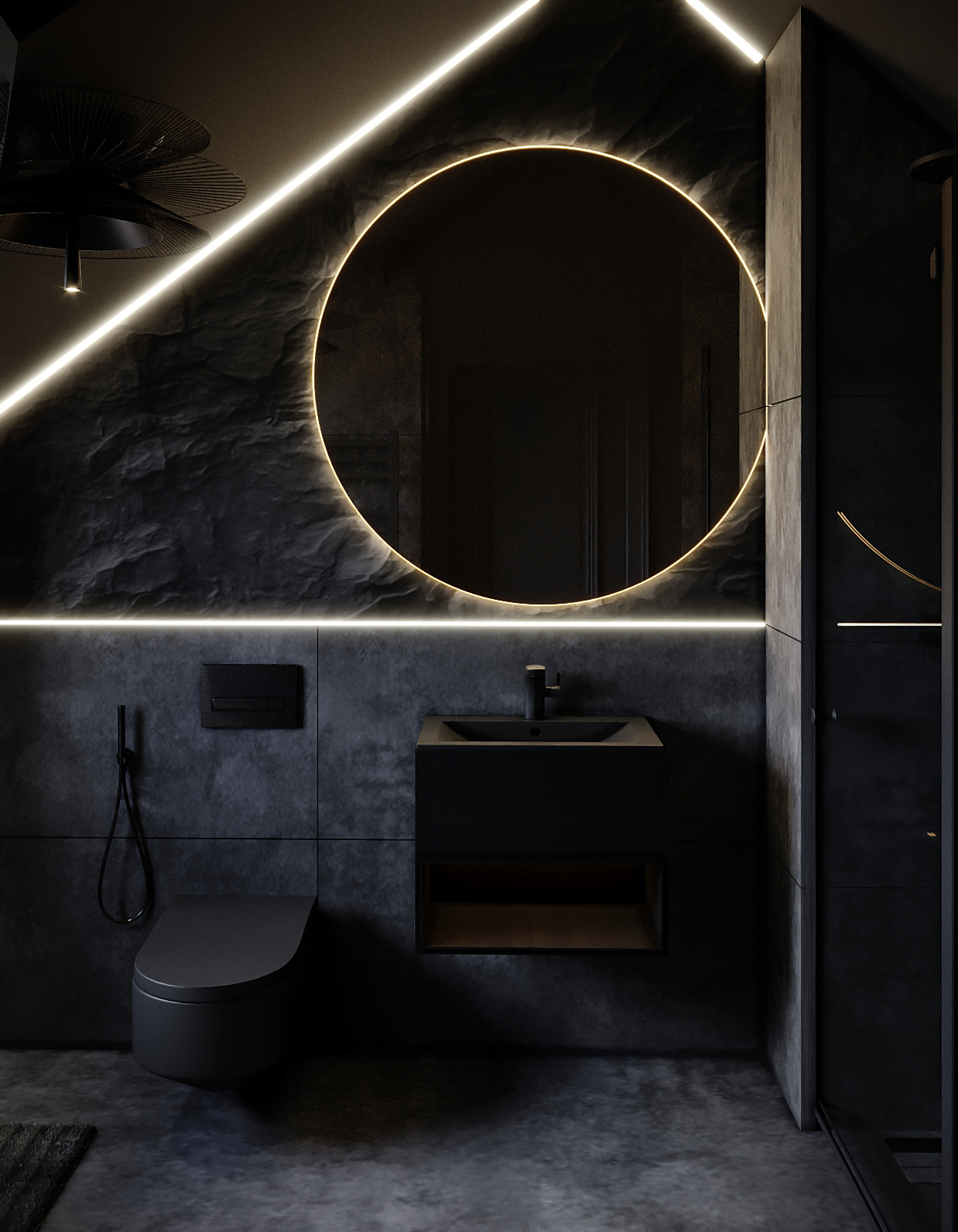 Elegant home design – Loft Bathroom (Dark Scheme) | West Midlands, UK | 2025