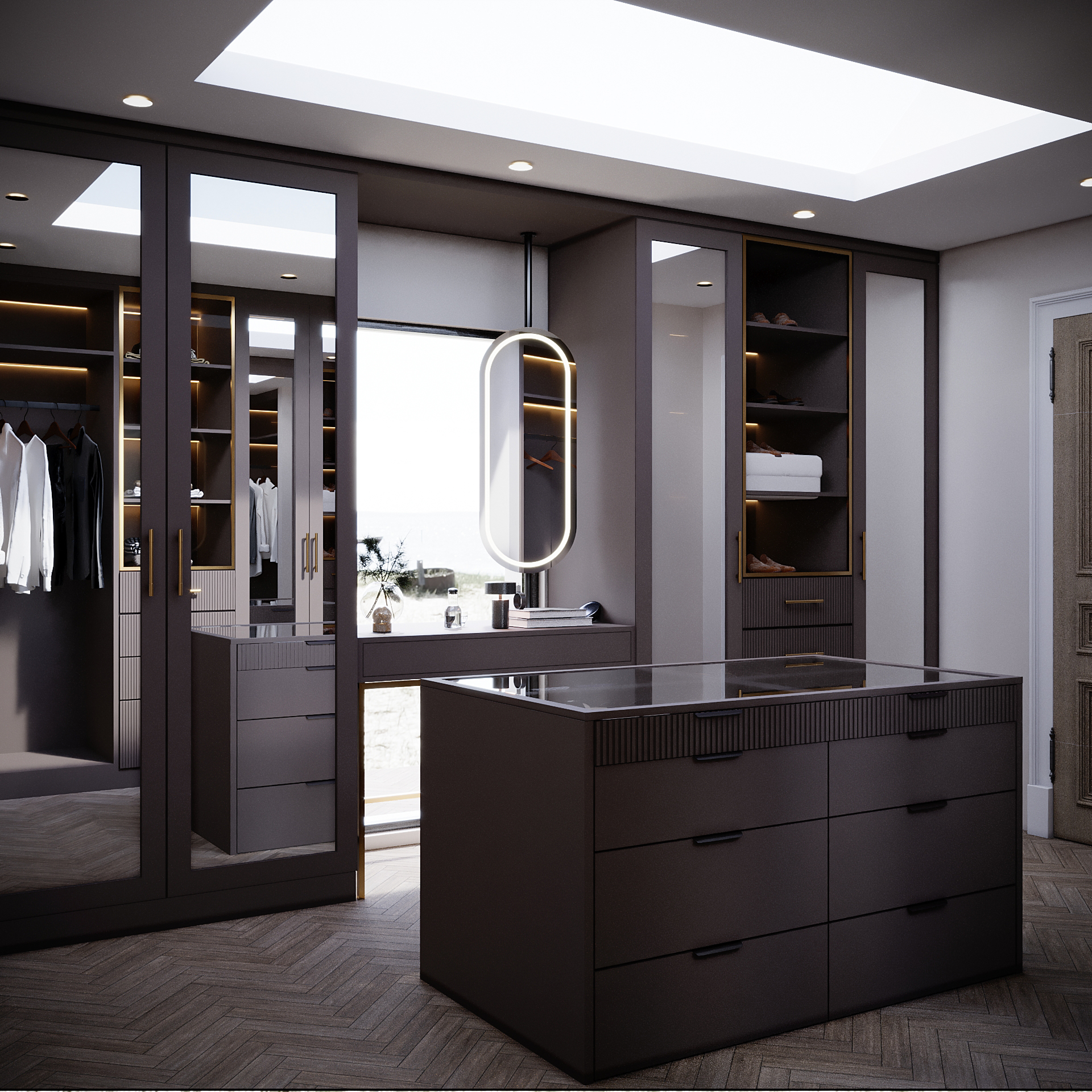 Elegant home design – Walk-in Wardrobe (Dark Scheme) | West Midlands, UK | 2025